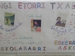 Atzo arratsaldean, Txabi Arnal izan genuen eskolan, bere lan berrien aurkezpena egiten; "Kar kardantxilo" 2. mailako ikasleei eta "Torlojuak" 3. eta 4. mailakoei.