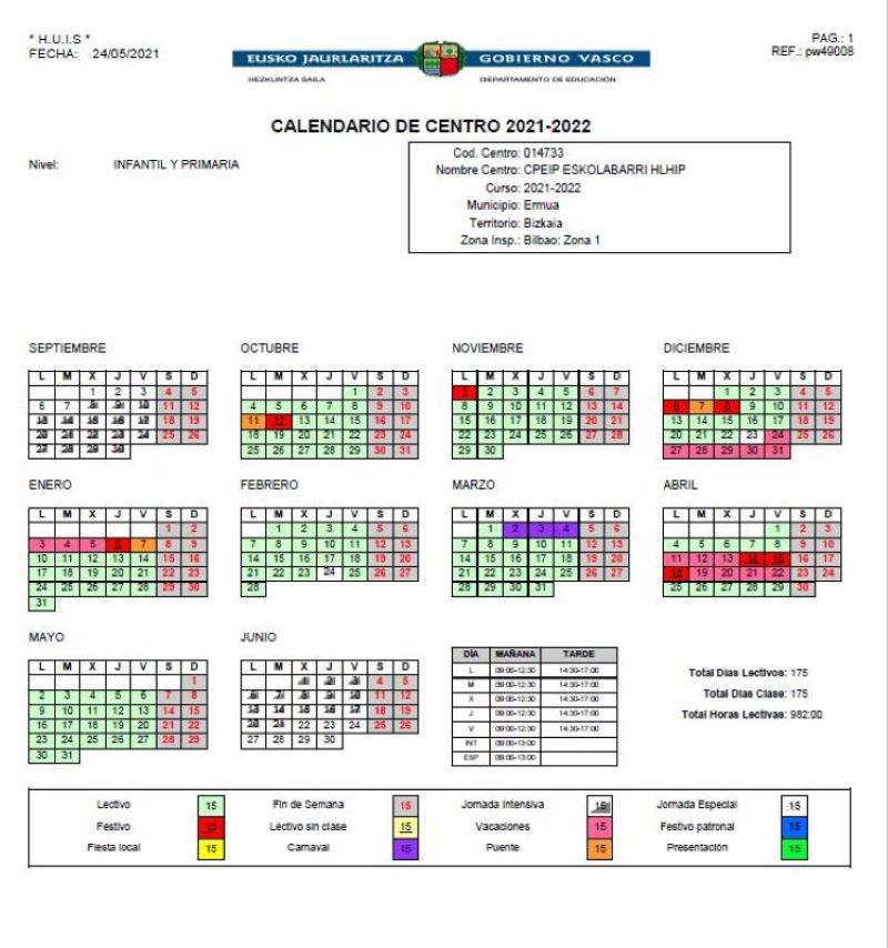 Calendario escolar 2021-22