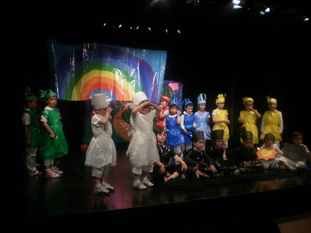 Durante este curso hemos estado preparando la obra de teatro "Eta zuk zein kolore duzu gustoko?". Nos lo hemos pasado muy bien. Ha sido un trabajo en equipo, repartir los personajes, aprendrer las frases, interpretar cada personaje, preparar los trajes, aprender la canción, hacer los murales... Hemos trabajado mucho y duro pero ha merecido la pena. Los resultados han sido muy buenos. Hemos representado la obra en el Lobiano a las familias, a los del cole y a otros colegios. El nerviosismo ha estado presente pero ha salido todo perfecto, como verdaderos profesionales. Lo más importante que nos lo hemos pasado en grande todos juntos.