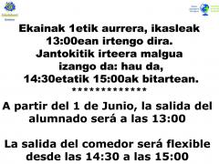 Inicio de la jornada contínua desde el 1 de junio