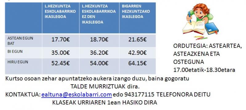 Anima zaitez eta etorri ESKOLABARRIKO INDARTZE KLASEETARA!!!