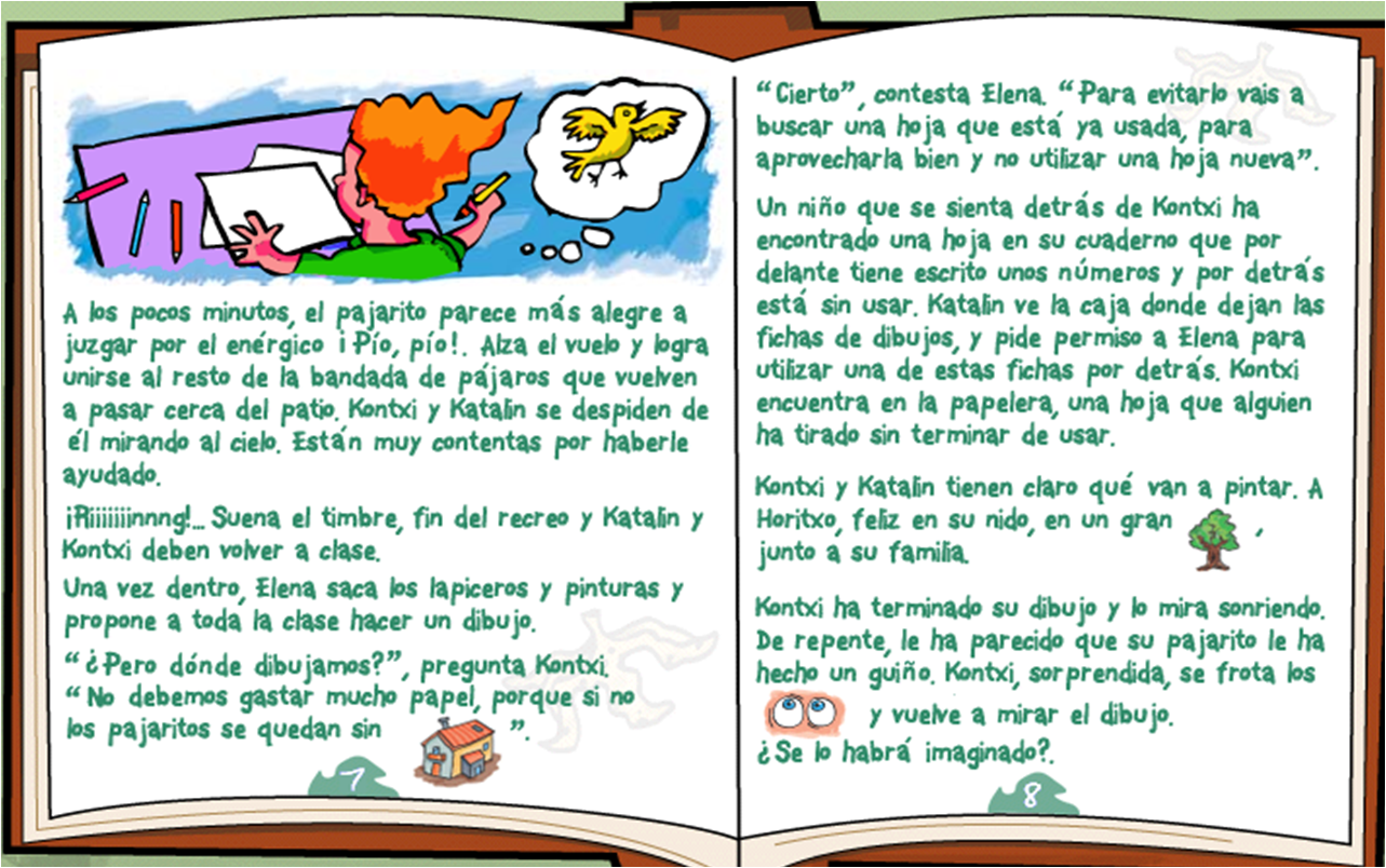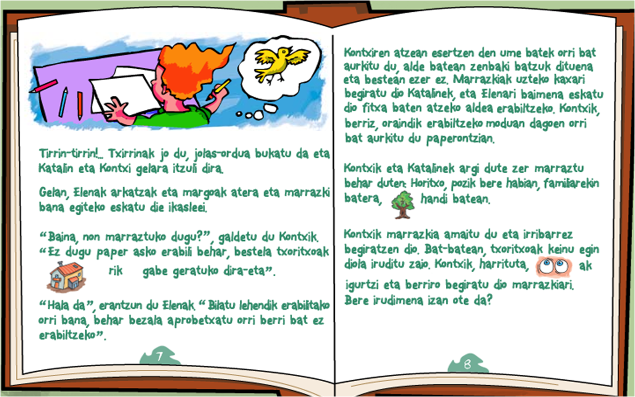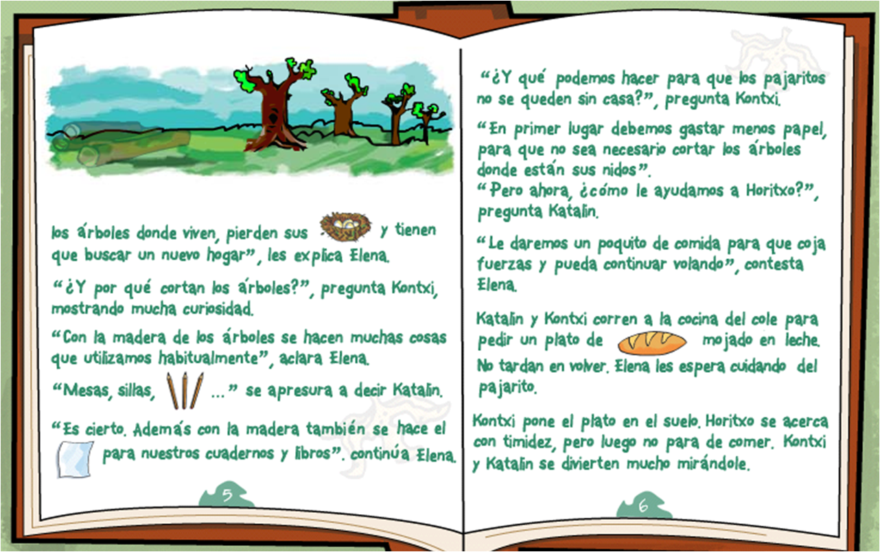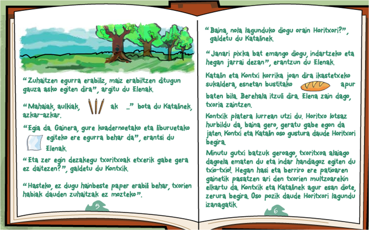 5 urteko gelan, asko gustatzen zaigun ipuin bat daukagu. Horregatik, andereñok uzten digu etxera eramaten gurasoei erakusteko. Irakurtzen digute eta bide batez, gelan ikasten dugunari buruz hitz egiten dugu.